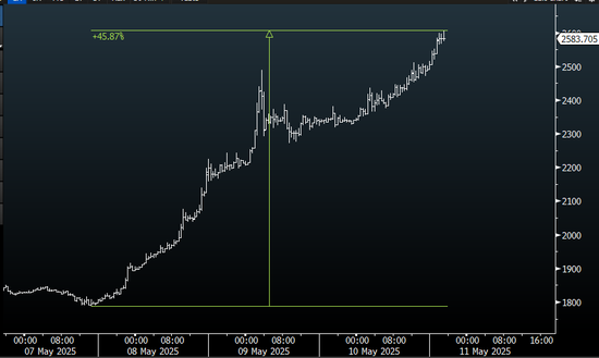 短短72小时内,ETH价格飙升超过40%,触及2600美元关口,创下自2019年(当时价格不足200美元)以来最佳三日涨幅表现,显著跑赢比特币等其他大型数字货币资产。