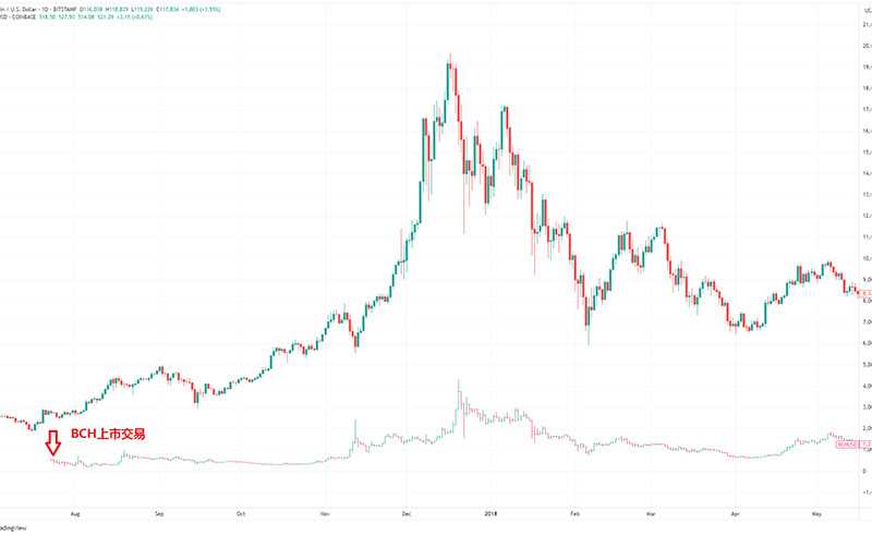 比特币现金推出的时间是2017年的8月,刚好赶上虚拟货币市场的大牛市。彼时比特币的价格约为2,700美元,总市值仅有不到450亿美元。而BCH上市当日价格就炒高到了380美元的水平,总市值达到了约63亿美元。