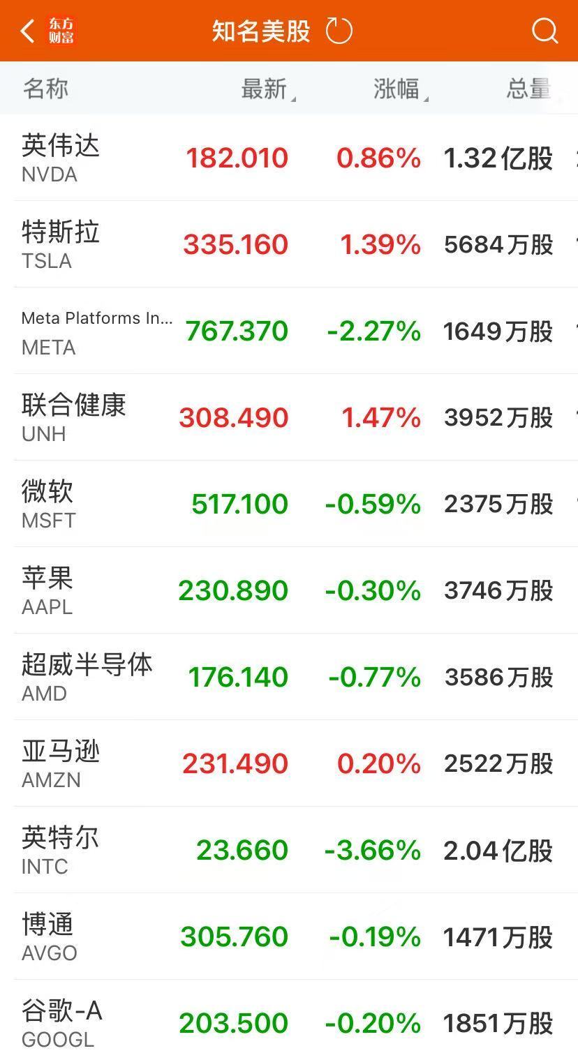 大型科技股涨跌不一,英特尔跌超3%,结束此前连续六个交易日上涨的趋势;Meta跌逾2%,苹果、微软、谷歌小幅下跌;特斯拉涨超1%,奈飞、亚马逊小幅上涨。